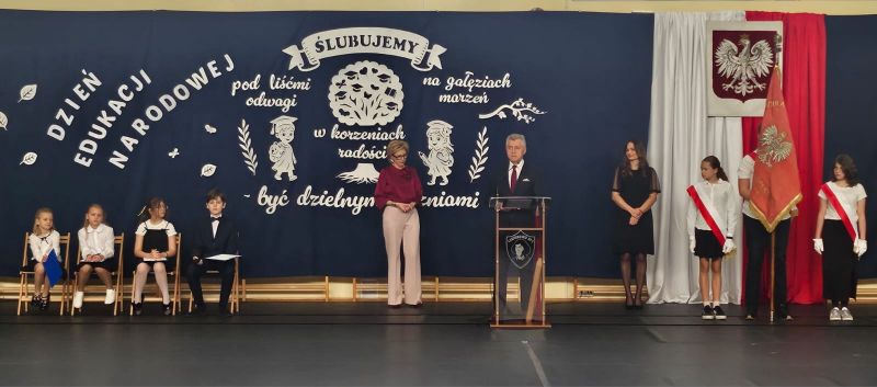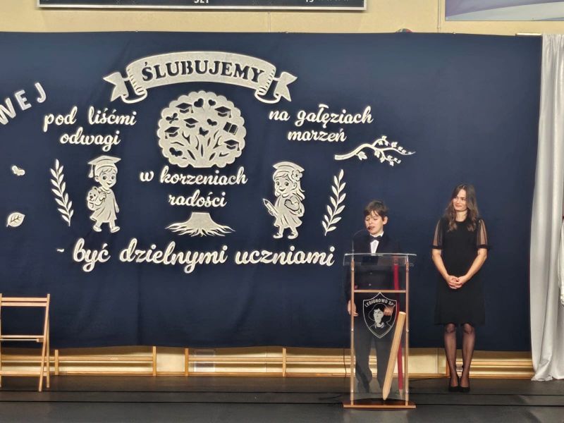 W uroczystości udział wzięli: Zastępca Prezydenta Miasta Legionowo – p. Mirosław Grabowski , Radna Rady Miasta Legionowo – p. Joanna Laskowska-Łaba oraz przedstawiciel Rady Rodziców – p. Anna Książek, Rodzice, dyrekcja szkoły oraz nauczyciele i pracownicy, a także przedstawiciele Samorządu Uczniowskiego naszej szkoły.