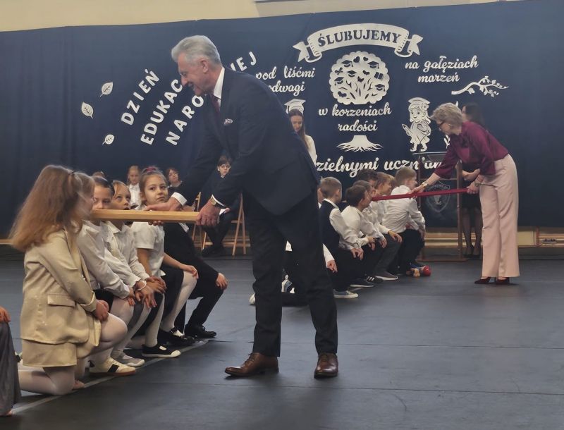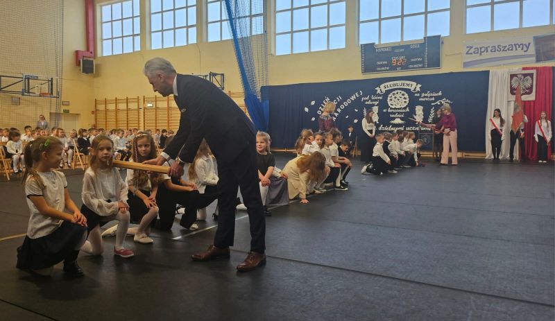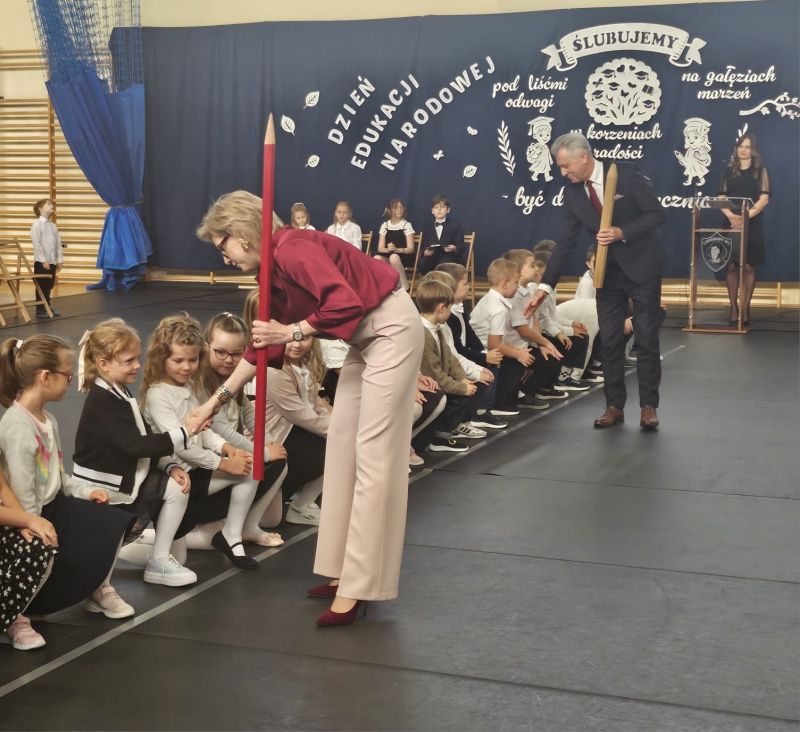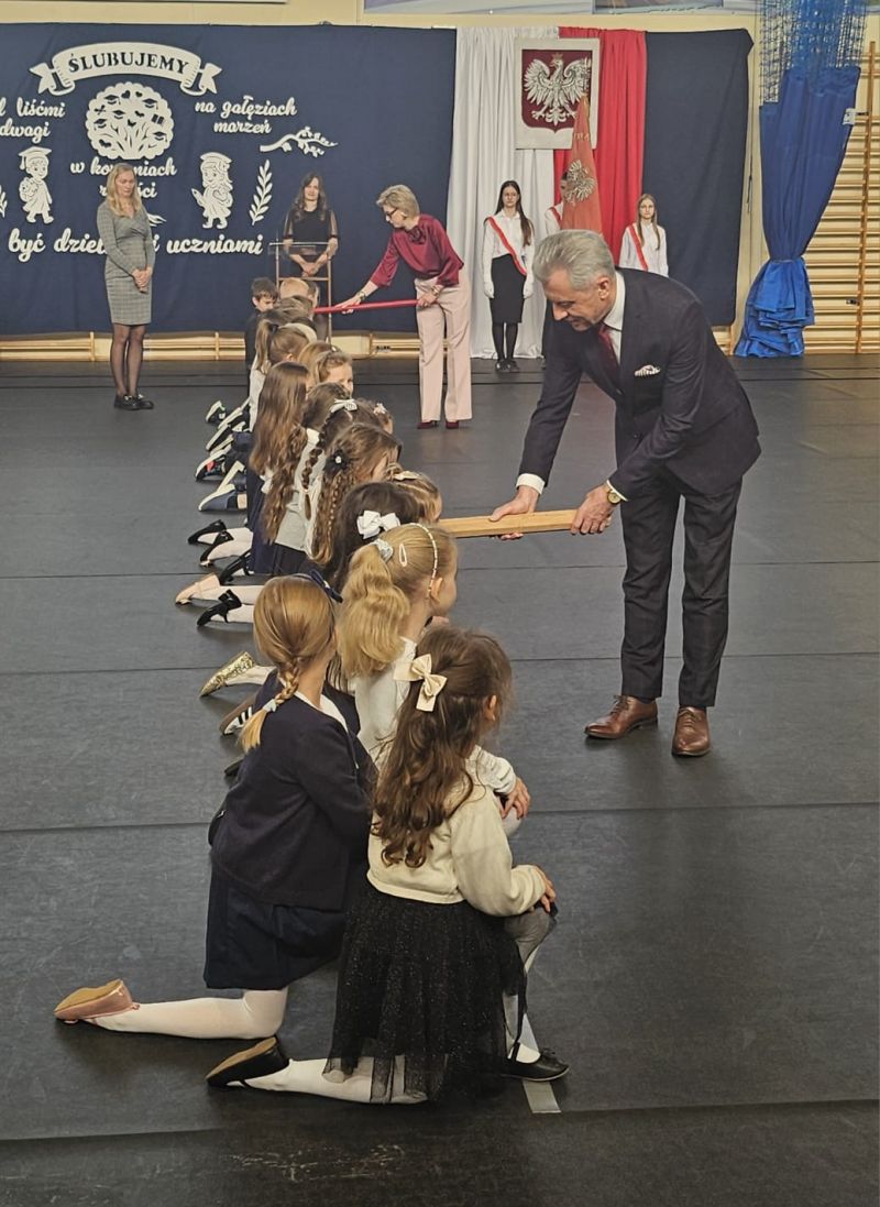 Doniosłym momentem uroczystości było dokonanie aktu pasowania przez Zastępcę Prezydenta Miasta Legionowo – Pana Mirosława Grabowskiego oraz Dyrektora szkoły – Panią Ewę Jabłońską. Tym samym dzieci stały się pełnoprawnymi uczniami klasy pierwszej Szkoły Podstawowej nr 1 im. Mikołaja Kopernika w Legionowie. W tym ważnym dla nich dniu pierwszaki otrzymały pamiątkowe dyplomy ufundowane przez Radę Rodziców oraz legitymacje szkolne.
