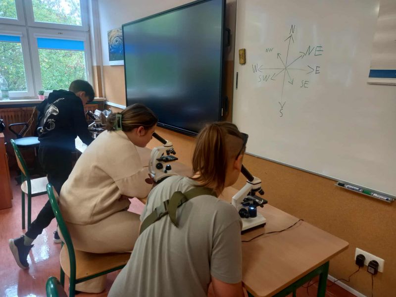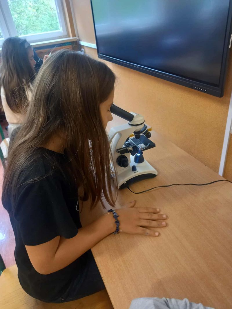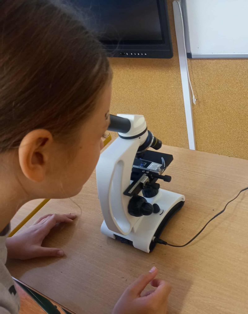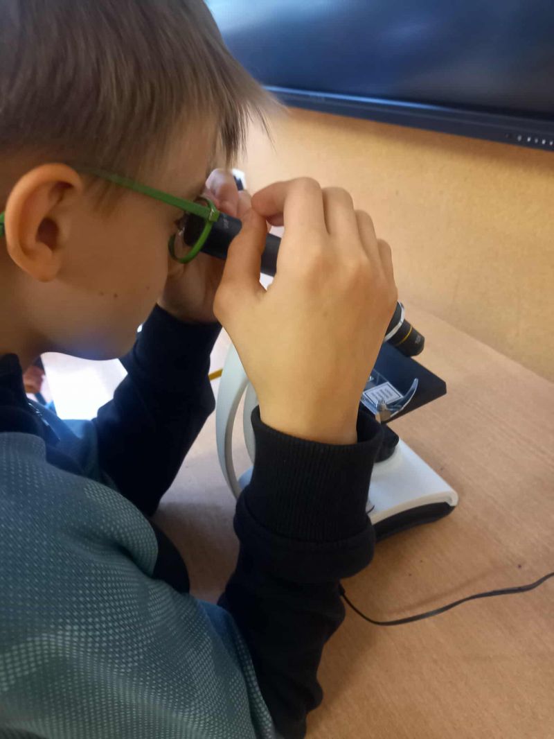 Piątoklasiści, podczas lekcji biologii i zajęć koła biologicznego poznawali różnorodność świata mikroorganizmów z wykorzystaniem mikroskopów z programu wspierającego nowoczesne technologie w szkołach - "Laboratoria Przyszłości". Uczniowie poznali tajniki obsługi mikroskopu, przygotowania preparatu (np. z miodu, skórki cebuli), obserwowali gotowe preparaty biologiczne drobnych struktur (komórek roślinnych i zwierzęcych) i dokumentowali swoje odkrycia. Obserwacje mikroskopowe zwiększyły wśród uczniów ciekawość świata i dostrzegania szczegółów niewidocznych gołym okiem.