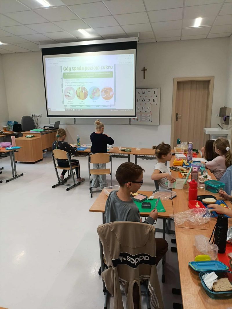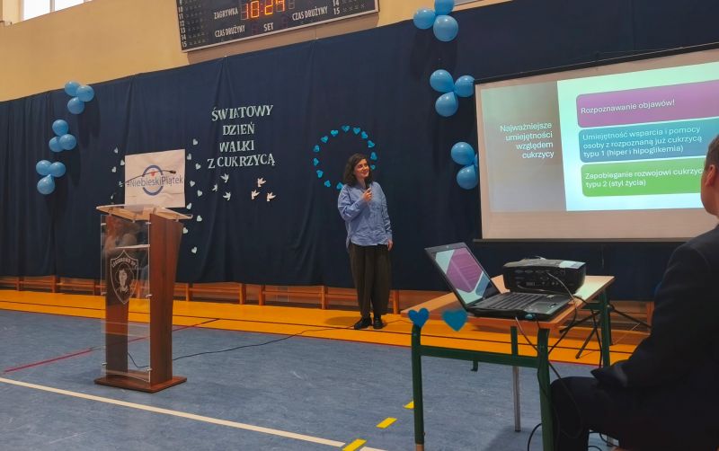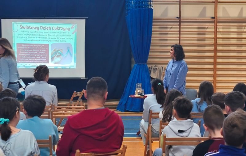 Z tej okazji Samorząd Uczniowski wraz z opiekunami przygotował apel, podczas którego zaprezentowano prezentację multimedialną dotyczącą cukrzycy oraz jej profilaktyki. Odbyło się także spotkanie z Panią Beatą Jabłonowską-Lietz – dietetykiem i edukatorką diabetologiczną z Federacji Diabetyków, która przekazała uczniom cenną wiedzę na temat tej choroby. Ponadto jeden z uczniów podzielił się własnymi doświadczeniami związanymi z cukrzycą, opowiadając o codziennych trudnościach i sposobach radzenia sobie z nimi.