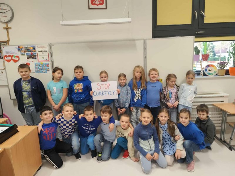 Tego dnia uczniowie ubrali się na niebiesko, okazując solidarność z osobami zmagającymi się z cukrzycą. W ramach integracji i wspólnej zabawy uczniowie klas młodszych utworzyli na sali gimnastycznej „niebieskie koło solidarności”. Pod hasłem „Rusz się dla zdrowia” odbyły się również aktywności ruchowe i zabawy sportowe, mające na celu zachęcenie uczniów do codziennej aktywności fizycznej.