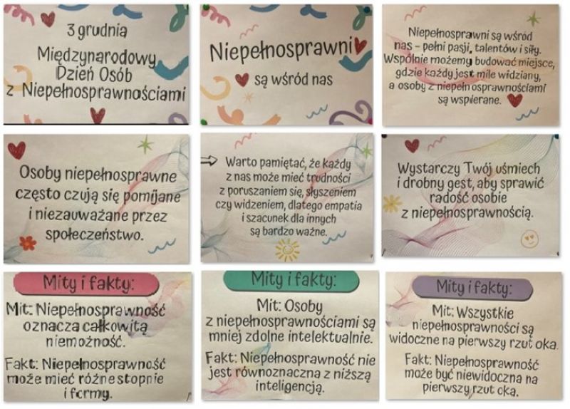 1. Uczniowie na lekcjach wychowawczych mogli obejrzeć prezentację na temat Międzynarodowego Dnia Osób Niepełnosprawnych.