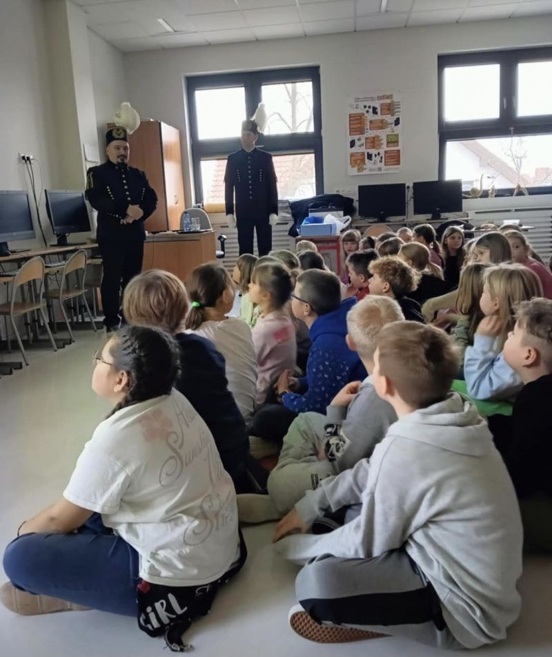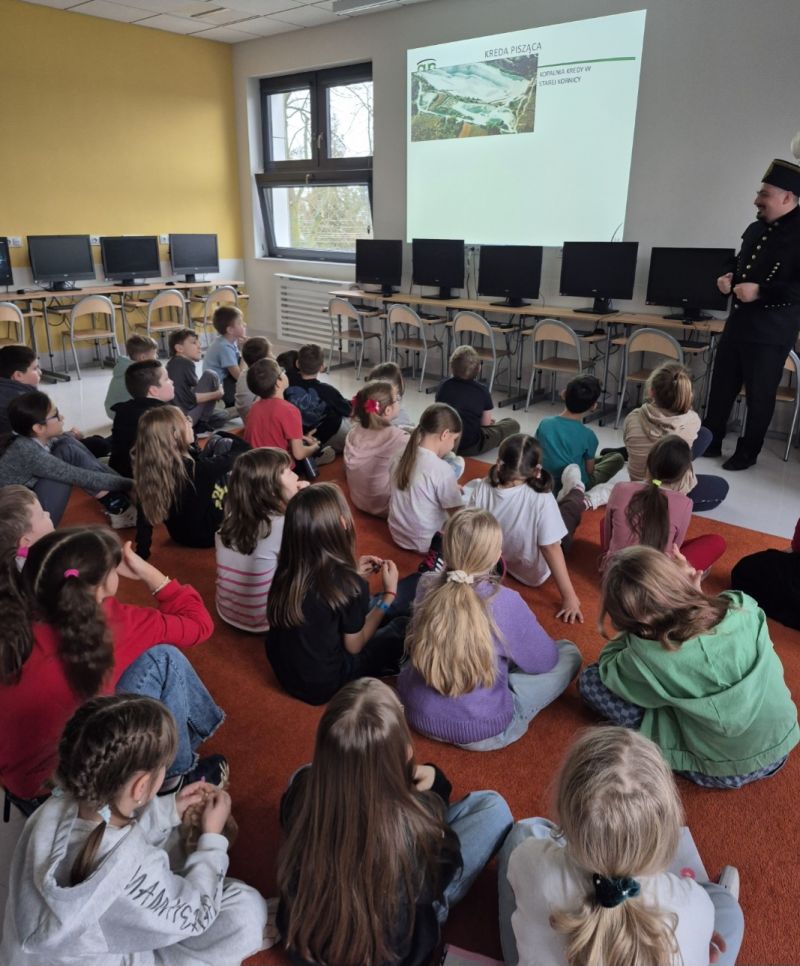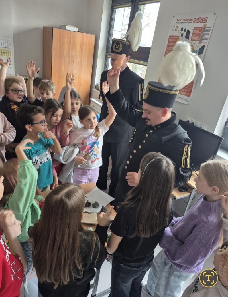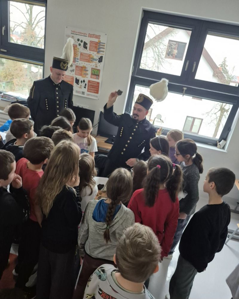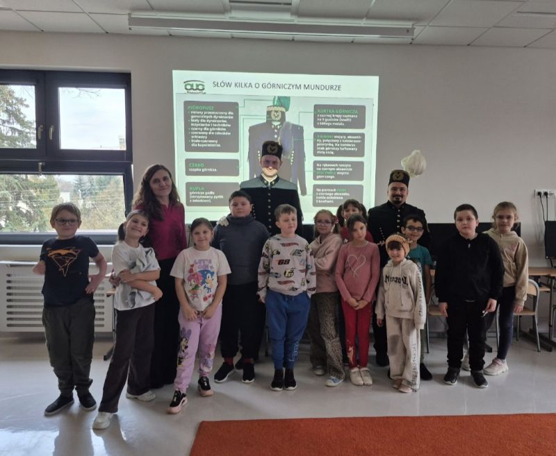 W dniu dzisiejszym uczniowie klasy: 2a, 2b, 2d, 2e, 3a, 3c i 3d miały możliwość spotkania się z górnikami. Dzieci zadawały wiele pytań i z dużym zainteresowaniem słuchały opowieści o tym, na czym polega praca górnika. Dowiedziały się również o trudach tej ciężkiej i odpowiedzialnej profesji.