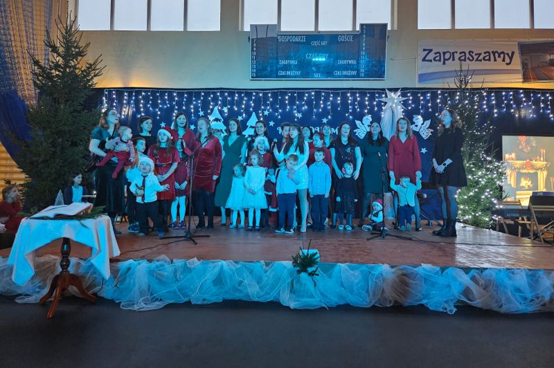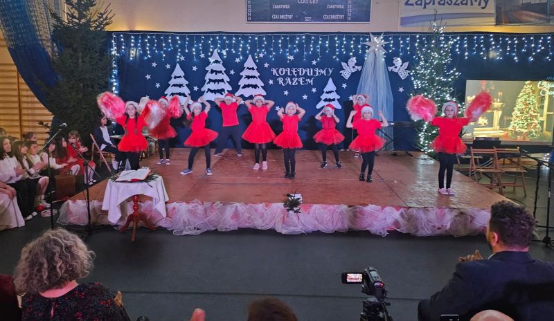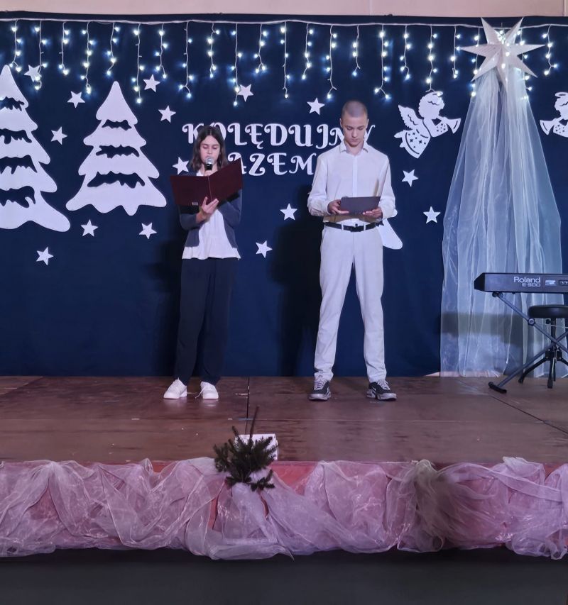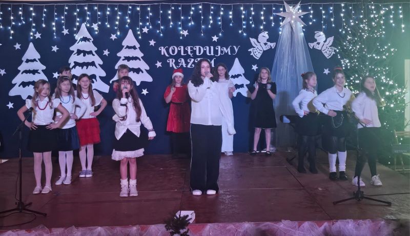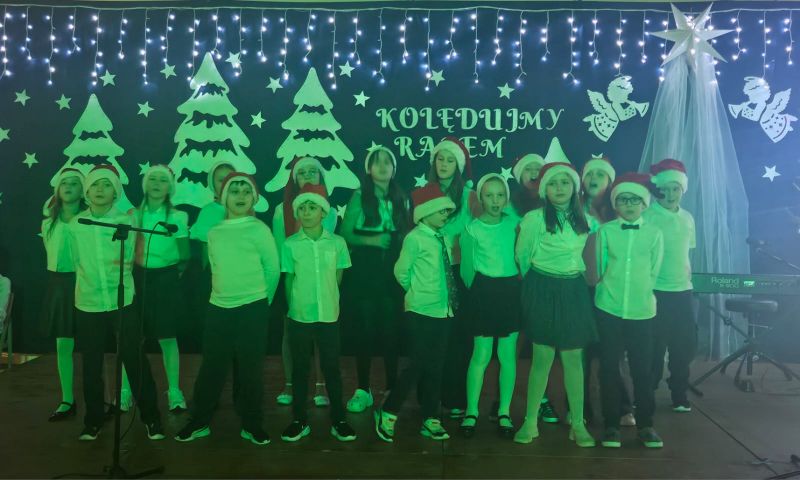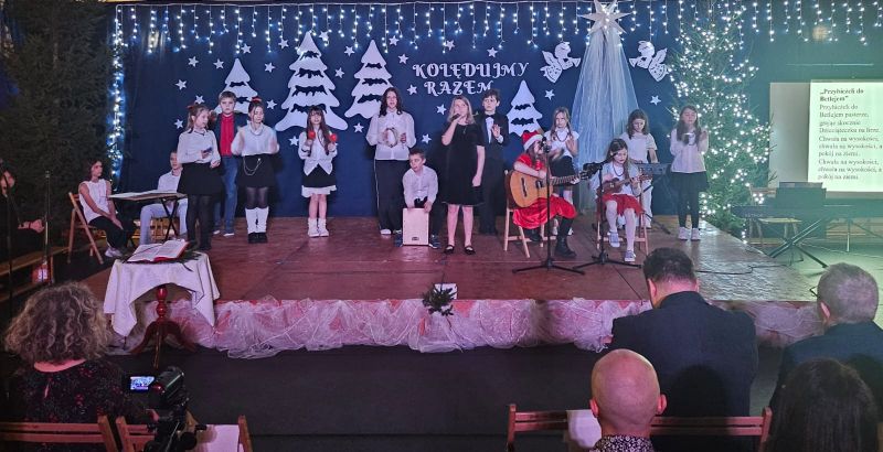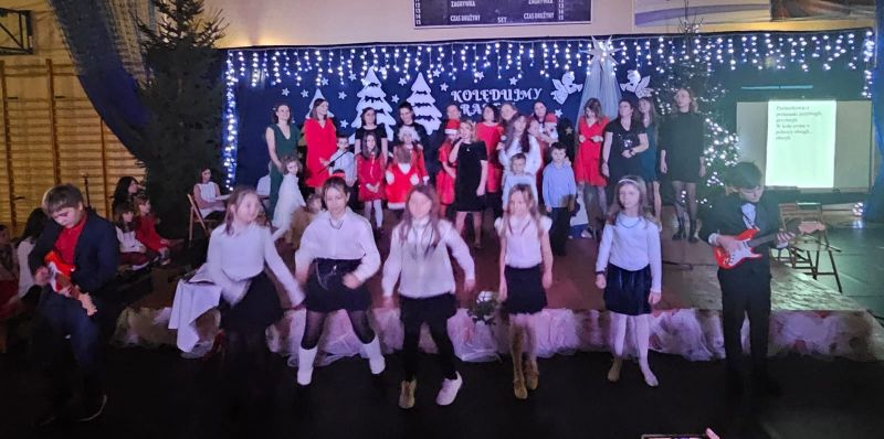 Wspólne kolędowanie stworzyło niepowtarzalną, ciepłą atmosferę pełną radości, nadziei i pozwoliło wszystkim uczestnikom poczuć prawdziwą magię nadchodzących Świąt Bożego Narodzenia. Podczas uroczystości uczniowie wraz z rodzicami zaprezentowali najpiękniejsze polskie kolędy oraz tradycyjne i nastrojowe pastorałki, przygotowane pod kierunkiem nauczycieli religii, muzyki oraz edukacji wczesnoszkolnej. Podczas występów nie zabrakło zarówno solowych wykonań, jak i występów zespołowych. Wspólne śpiewanie, piękne aranżacje oraz świąteczna scenografia sprawiły, że koncert stał się niezapomnianym przeżyciem dla całej społeczności szkolnej. To wyjątkowe wydarzenie było nie tylko okazją do prezentacji talentów, lecz także do budowania więzi i wspólnego przeżywania tradycji bożonarodzeniowych.