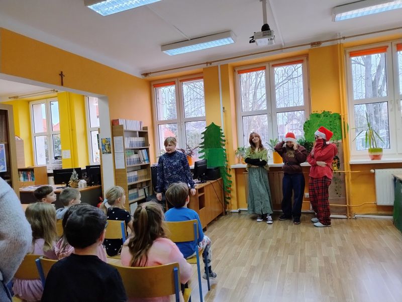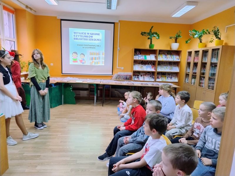 W dniu 17.12.2025r. uczniowie klas pierwszych zostali przyjęci do grona czytelników biblioteki szkolnej.