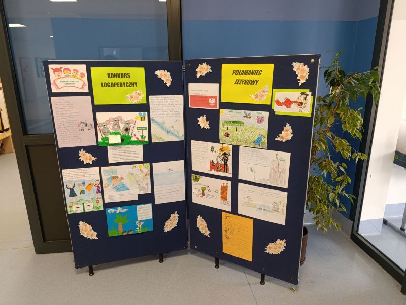Odbył się również konkurs logopedyczno - plastyczny "Łamaniec językowy". Prace uczniów można podziwiać przy wejściu do nowego budynku szkoły.