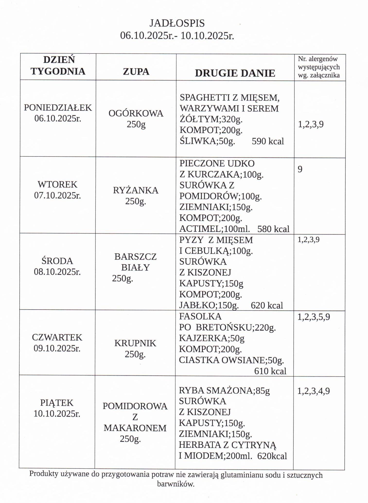 Jadłospis 6-10.10.2025 r.