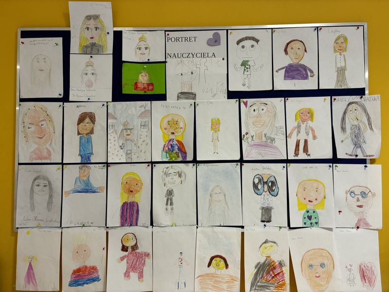Z dużym zainteresowaniem spotkał się świetlicowy konkurs plastyczny „Z przymrużeniem oka – portret nauczyciela”. Uczniowie wykazali się ogromną kreatywnością, poczuciem humoru oraz talentem artystycznym. Powstały piękne, oryginalne i pełne pomysłowości prace, które wzbudziły wiele uśmiechu.