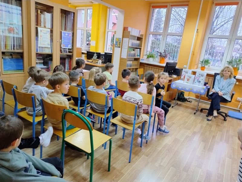 W dniu 9 grudnia biblioteka gościła poczytną autorkę książek, wierszy i piosenek dla dzieci- panią Hannę Niewiadomską. Spotkanie z autorką spotkało się z ogromną radością, dzieci były bardzo zainteresowane pracą pisarki, zważywszy, że p. Hanna jest mieszkanką Legionowa. W naszej bibliotece znajdziemy książki Autorki, dlatego serdecznie zachęcamy do ich wypożyczania i zapoznania się z twórczością poetki.
