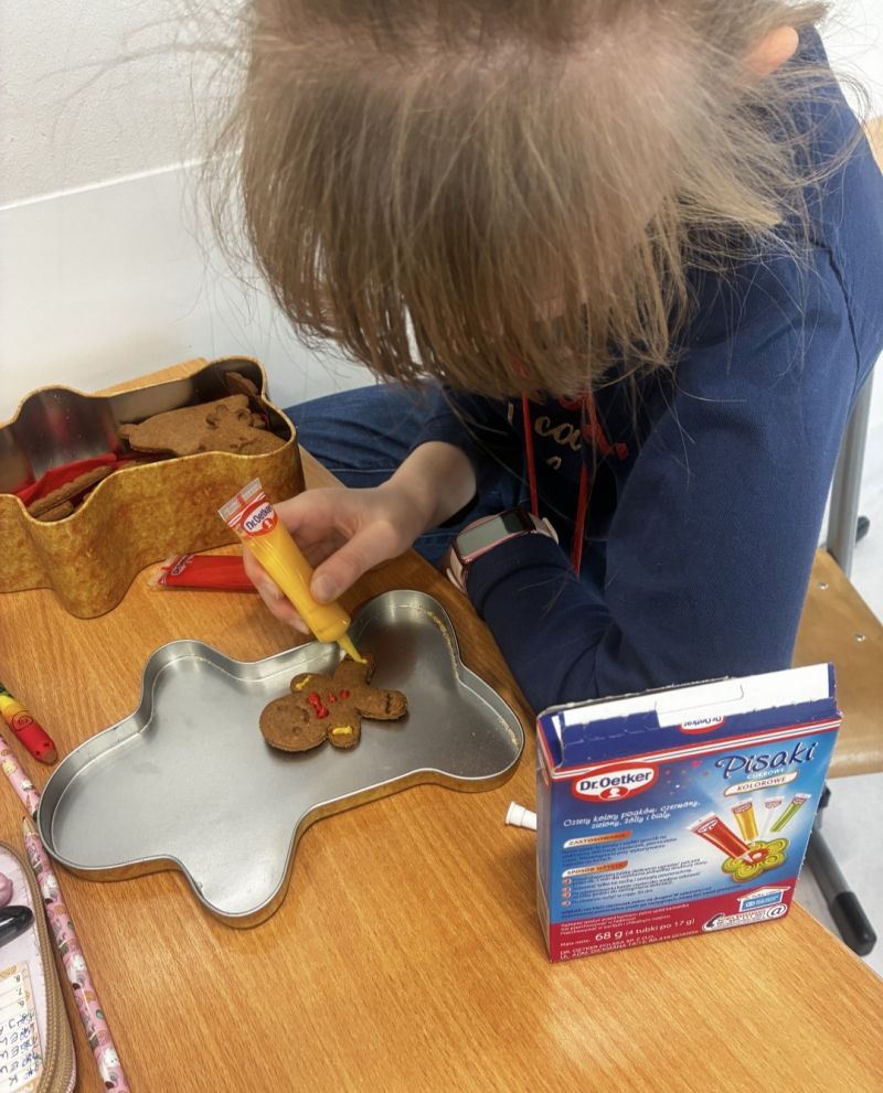 Klasa 3a wzięła udział w warsztatach piernikowych. Uczniowie z dużym zaangażowaniem dekorowali pierniki, rozwijając swoją kreatywność i zdolności manualne. Zajęcia przebiegły w miłej i radosnej atmosferze.