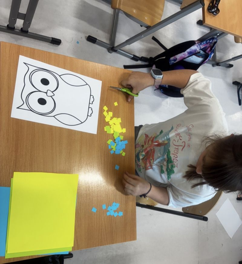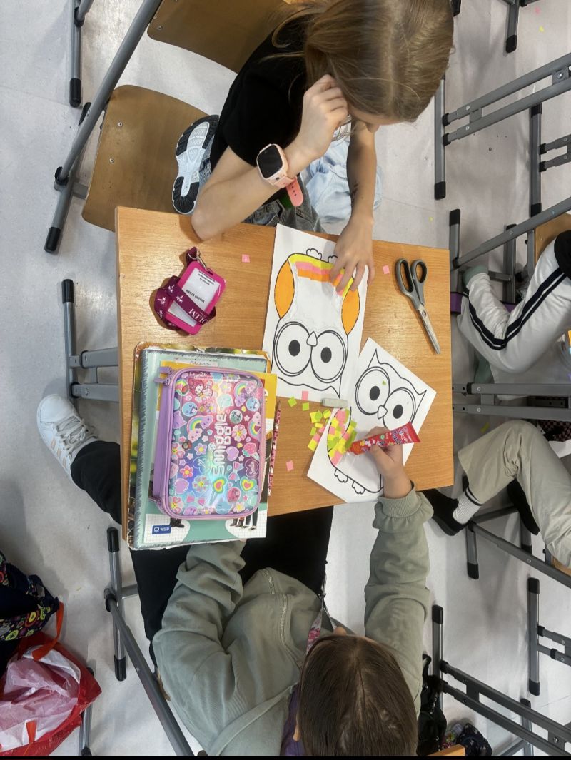 Podczas zajęć uczniowie rozmawiali o tym, skąd autorzy czerpią pomysły i w jaki sposób tworzą swoje pasjonujące historie. Inspirując się światem czarodziejów, dzieci z zaangażowaniem układały kolorowe elementy mozaiki, tworząc barwne, pełne szczegółów sowy – jeden z najbardziej rozpoznawalnych symboli z książek o Harrym Potterze.