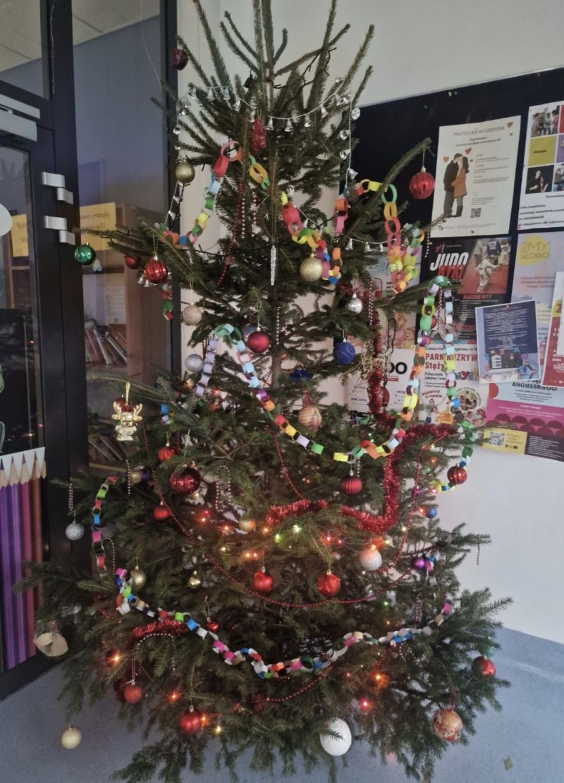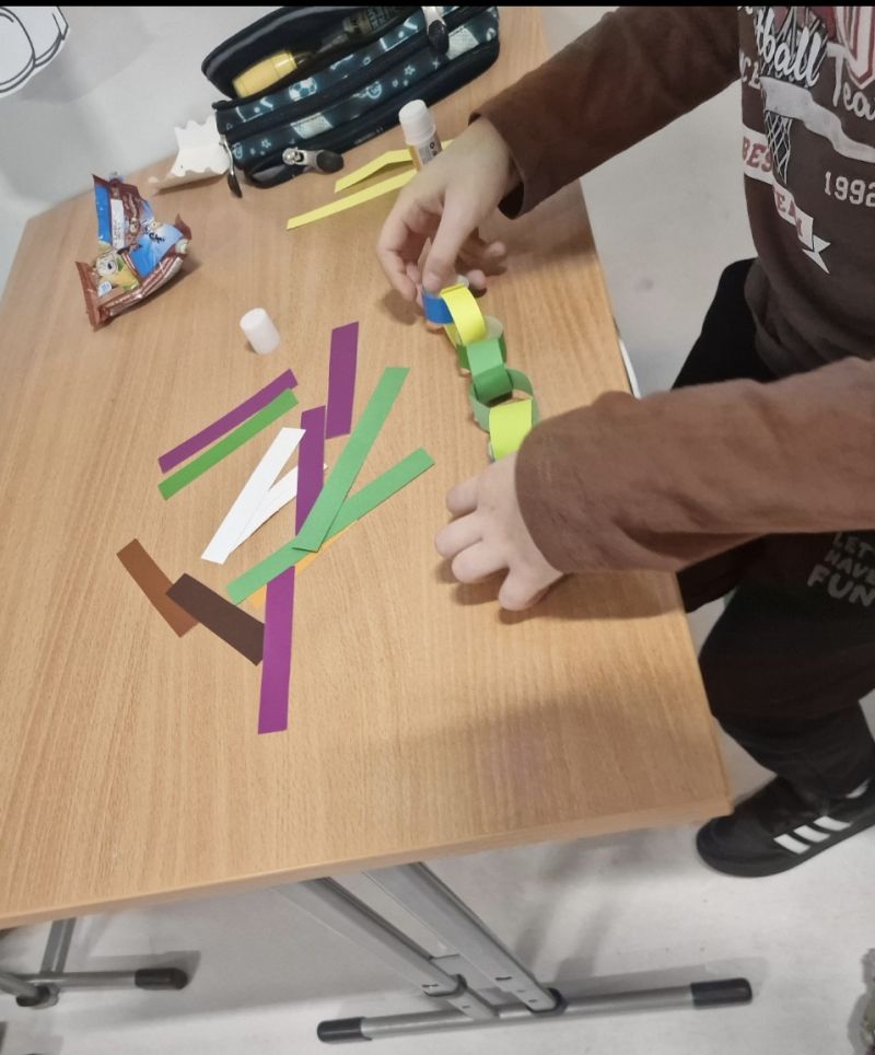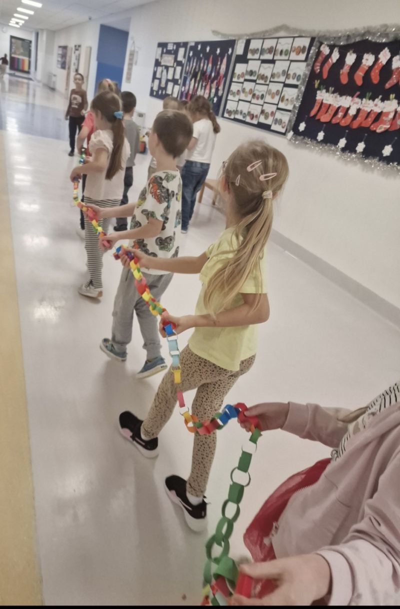 Dnia 12 grudnia w świetlicy udowodniliśmy, że razem możemy więcej! Uczniowie z klasy 1A stworzyli przepiękny, długi łańcuch choinkowy z kolorowego papieru. Każde dziecko wykonało kawałek, a następnie solidarnie połączyliśmy wszystkie części w jeden, imponujący łańcuch! Gotowa dekoracja zawisła już na głównej choince szkolnej w przedsionku. Brawo za współpracę!
