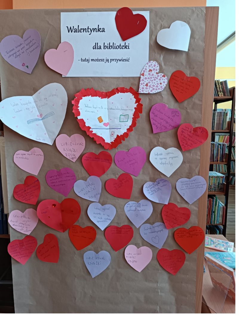 W piątek tj. 13.02 odbyły się biblioteczne walentynki - akcja polegająca na napisaniu życzeń dla biblioteki lub krótkiego uzasadnienia dlaczego kochamy książki.