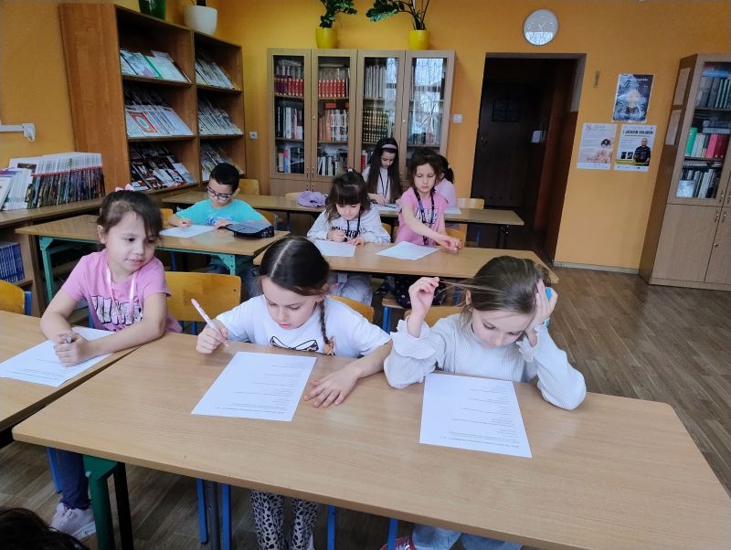 biblioteka szkolna zaprosiła uczniów do udziału w quizach czytelniczych.